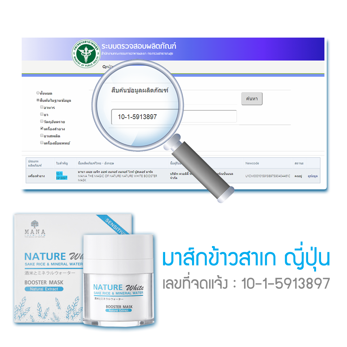 ดึกแค่ไหน ก็ขาวใส "ไม่โทรม" มาส์กข้าวสาเกให้ประสิทธิภาพมากกว่ามาส์กทั่วไป ถึง 5 เท่า ข้าวสาเก จากแคว้น มิเอะ จากแหล่งปลูกข้าวที่ดีที่สุด